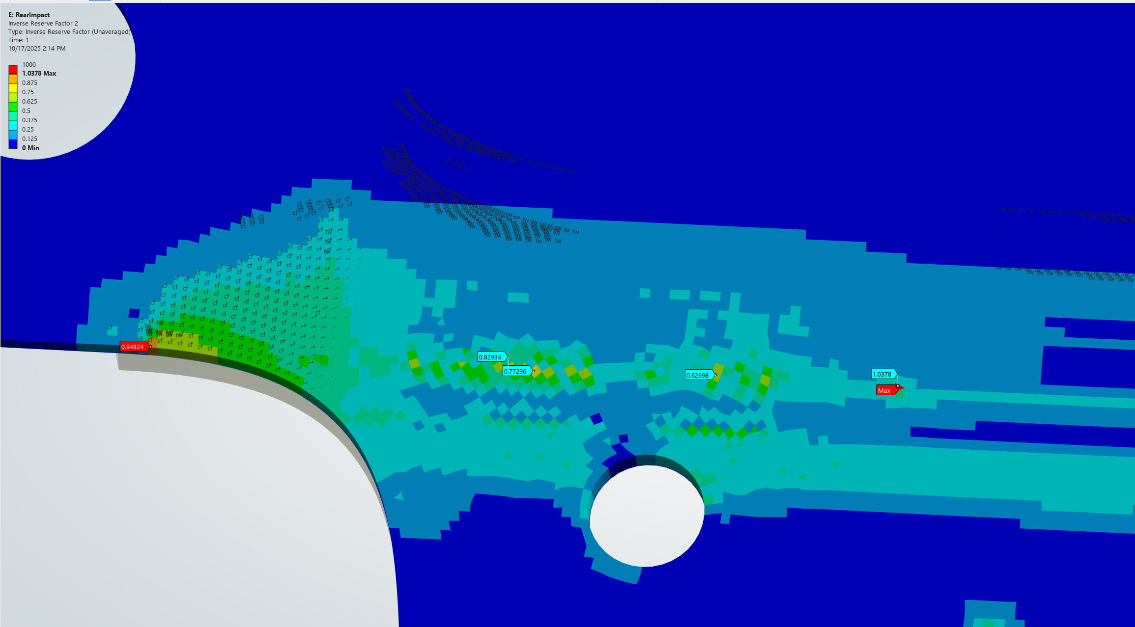 Going in with no previous FEA experience, a lot of my time at the start was focused on building a reliable and repeatable simulation workflow. I spent time understanding how to properly constrain and bond multi-component models, accurately representing composite material modeling in ACP using real world testing data, and how to interpret composite failure criteria such as Tsai-Wu and core crush.
