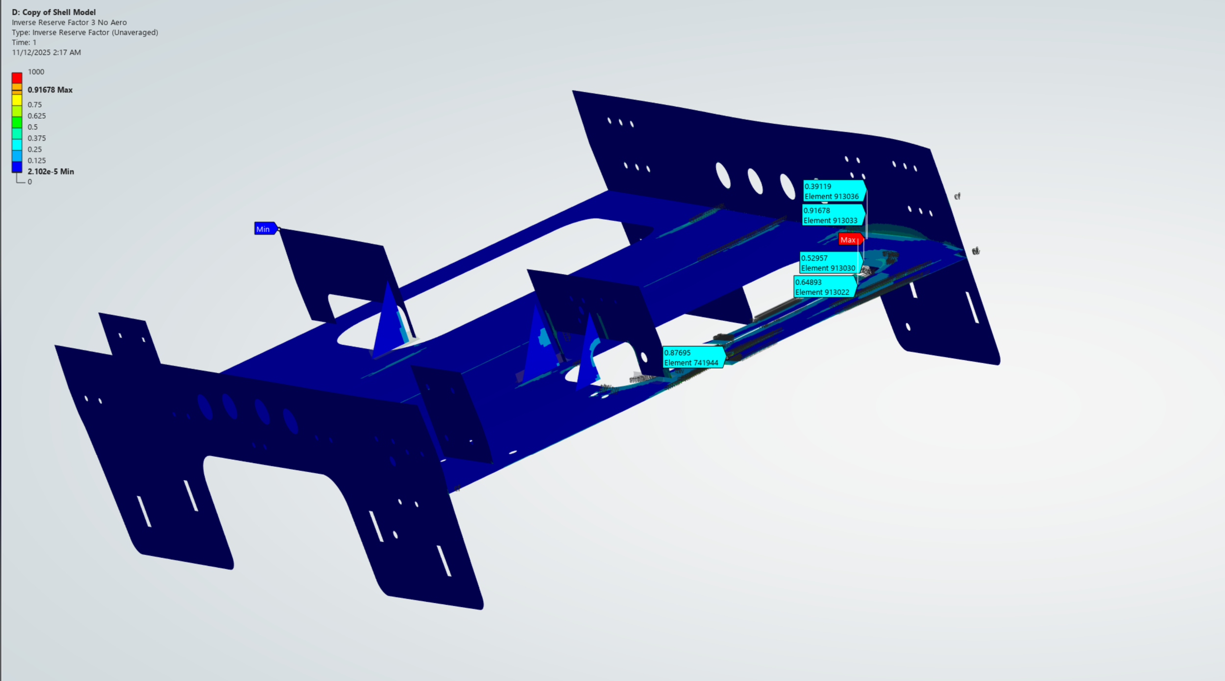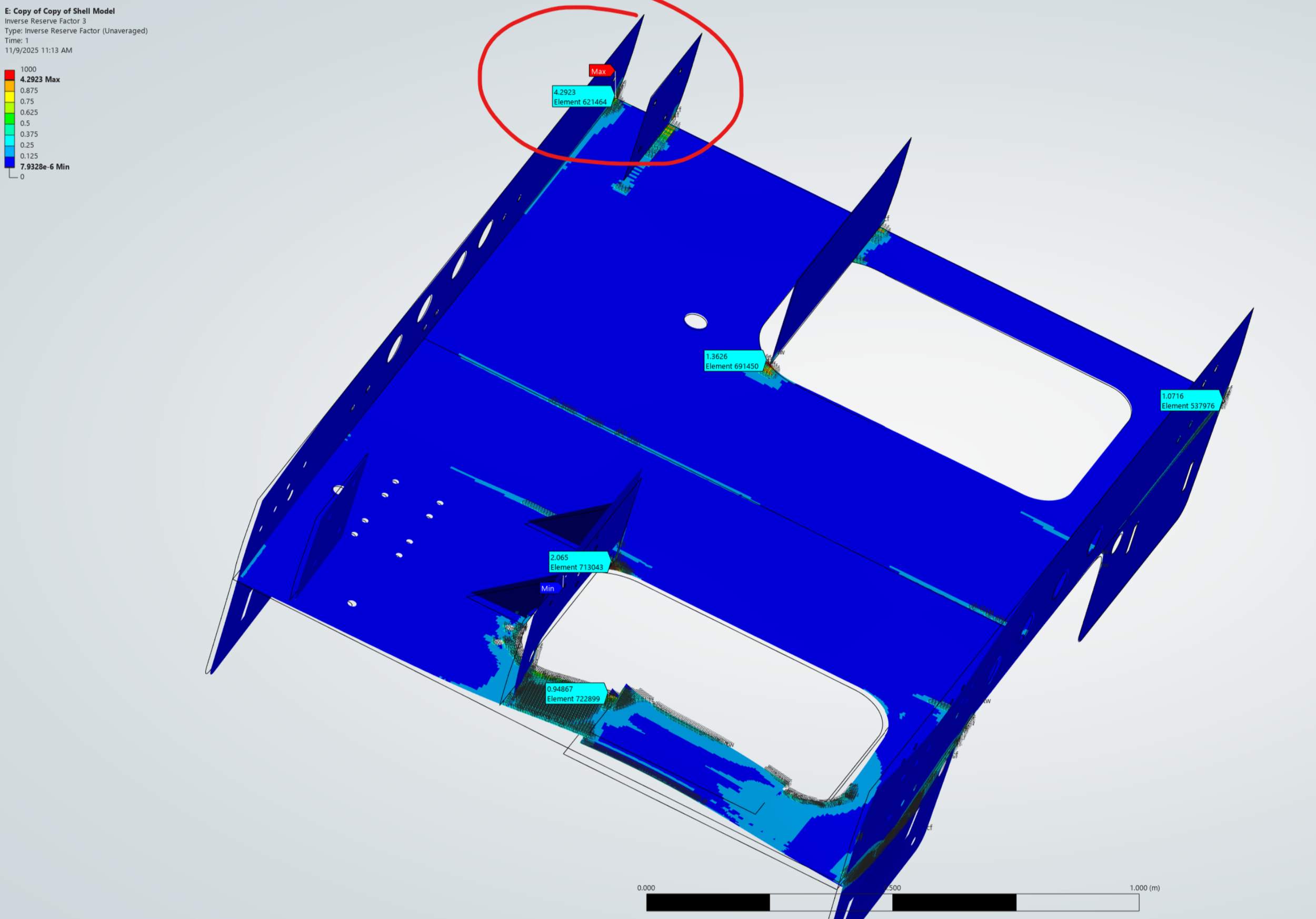 Initially, rear panel, among other areas, consistently showed stress concentrations on the loading patch - needed to add reinforcements + make design changes to address these areas